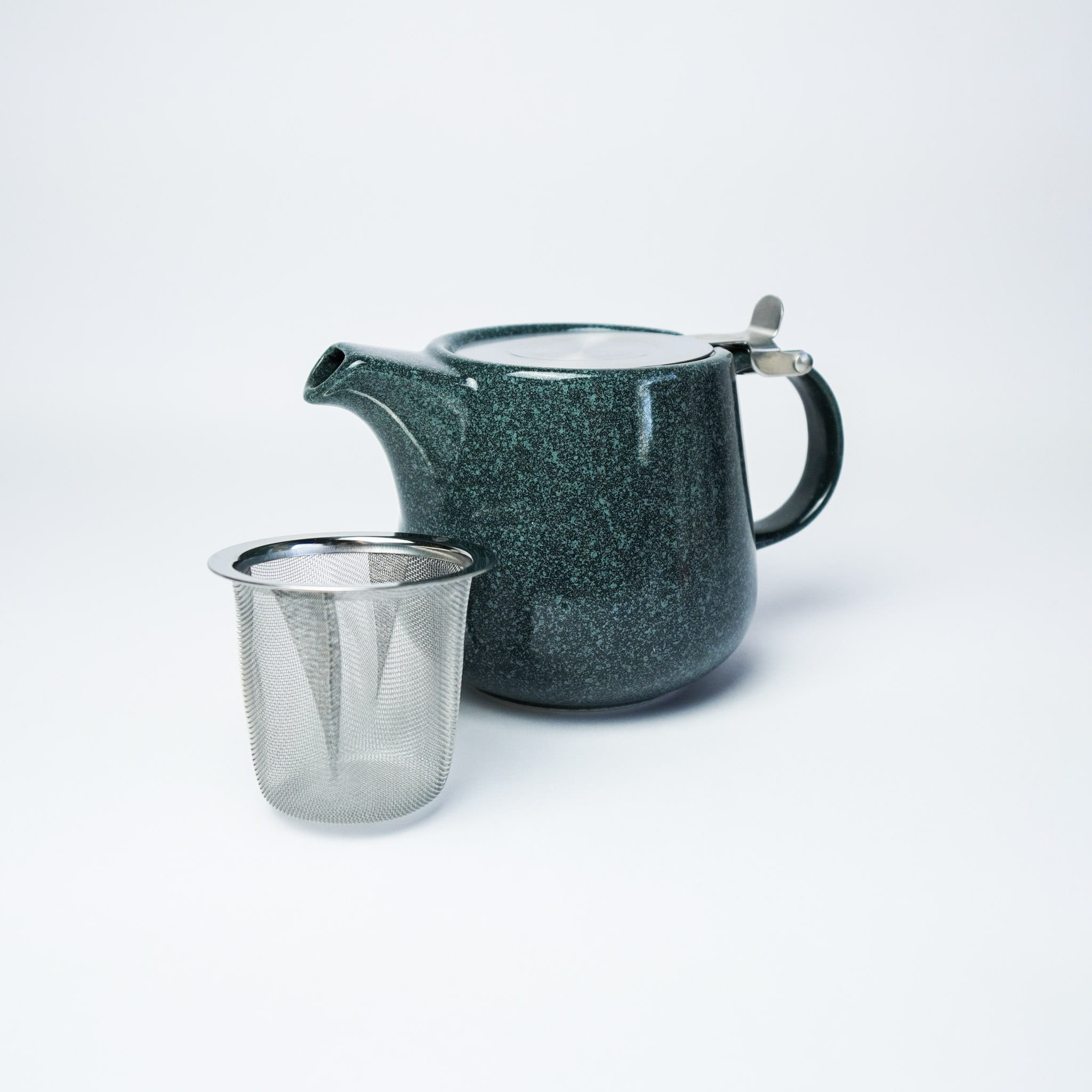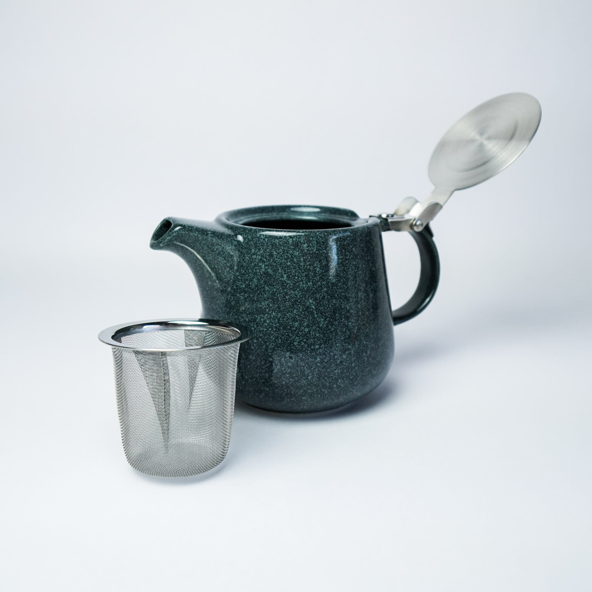 Elegancki czajniczek porcelanowy pokryty unikalną reaktywna glazurą, z praktyczną, stalową pokrywką, w komplecie z zaparzaczem o pojemności 0,5 l, co pozwala zaparzyć trzy filiżanki naparu.