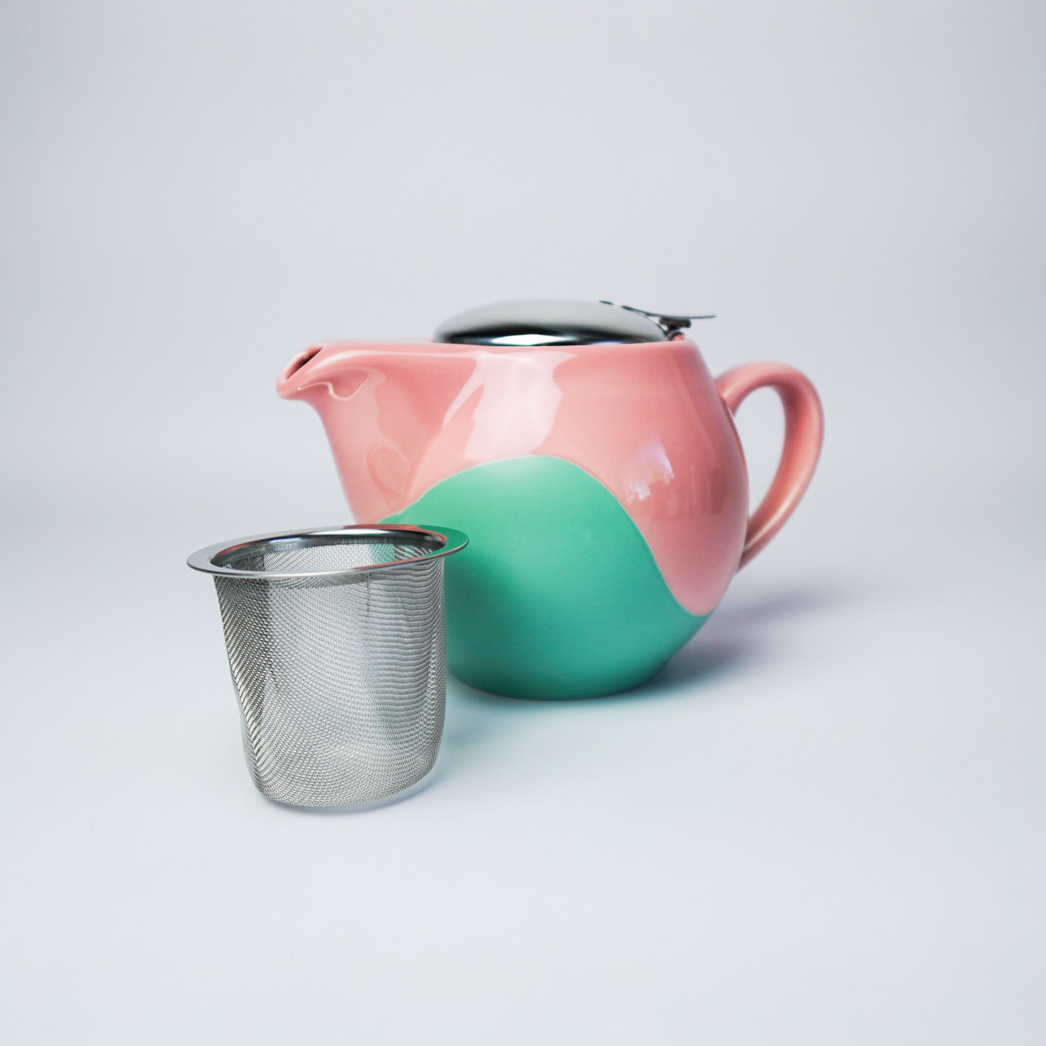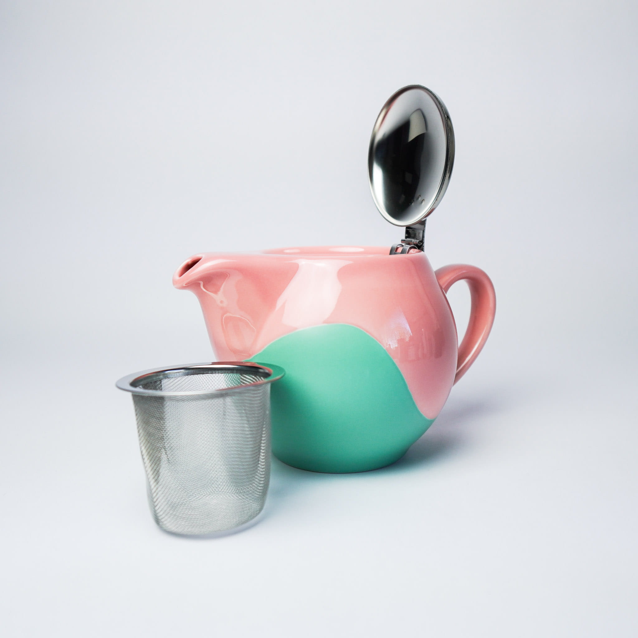 Połączenie delikatnej zieleni i subtelnego różu sprawia, że porcelanowy czajniczek z szerokiej serii Saara przyciąga uwagę, zachwycając geometrycznym wykończeniem. Balans przemyślanego designu z funkcjonalnością. Pojemność 0,5l jest idealna by zapełnić trzy filiżanki.