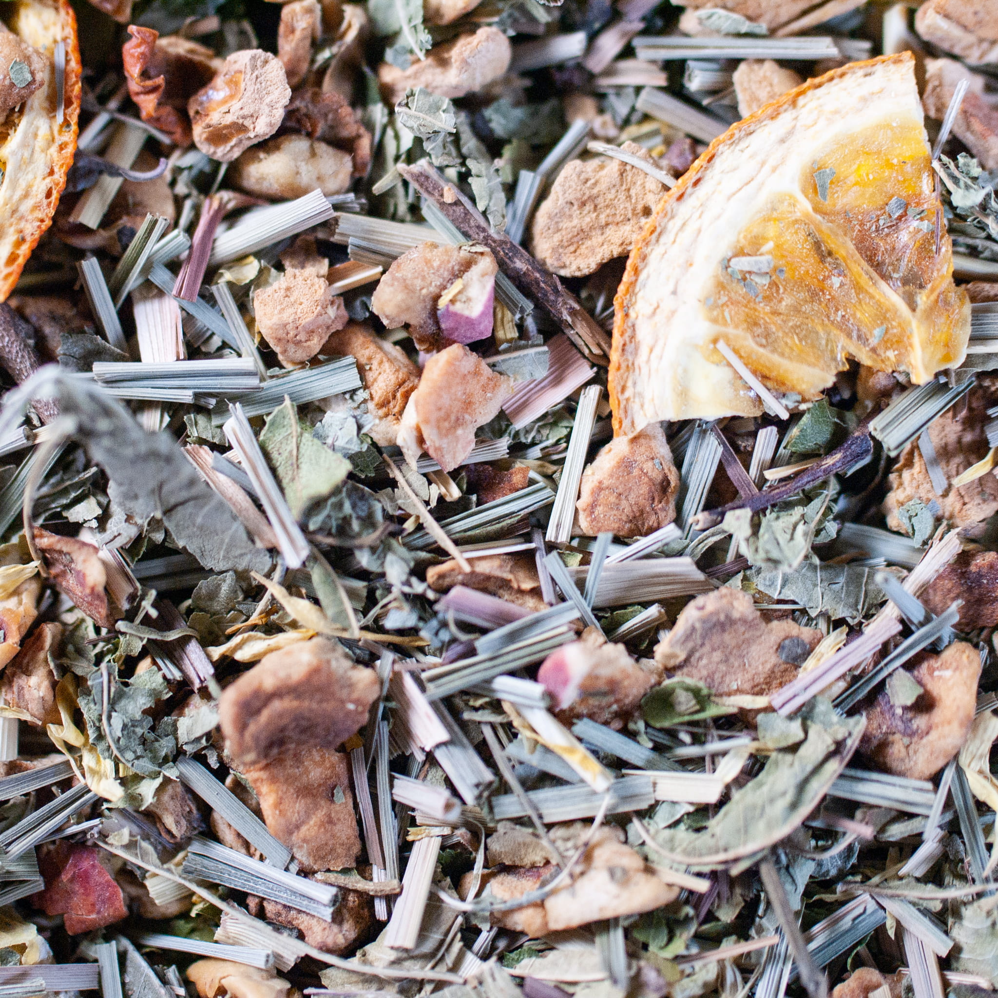 Skład: jabłko (56,5%), trawa cytrynowa (19%), werbena cytrynowa (12%), plastry pomarańczy (6%), mirt cytrynowy (5%), kwiaty nagietka (1,5%).