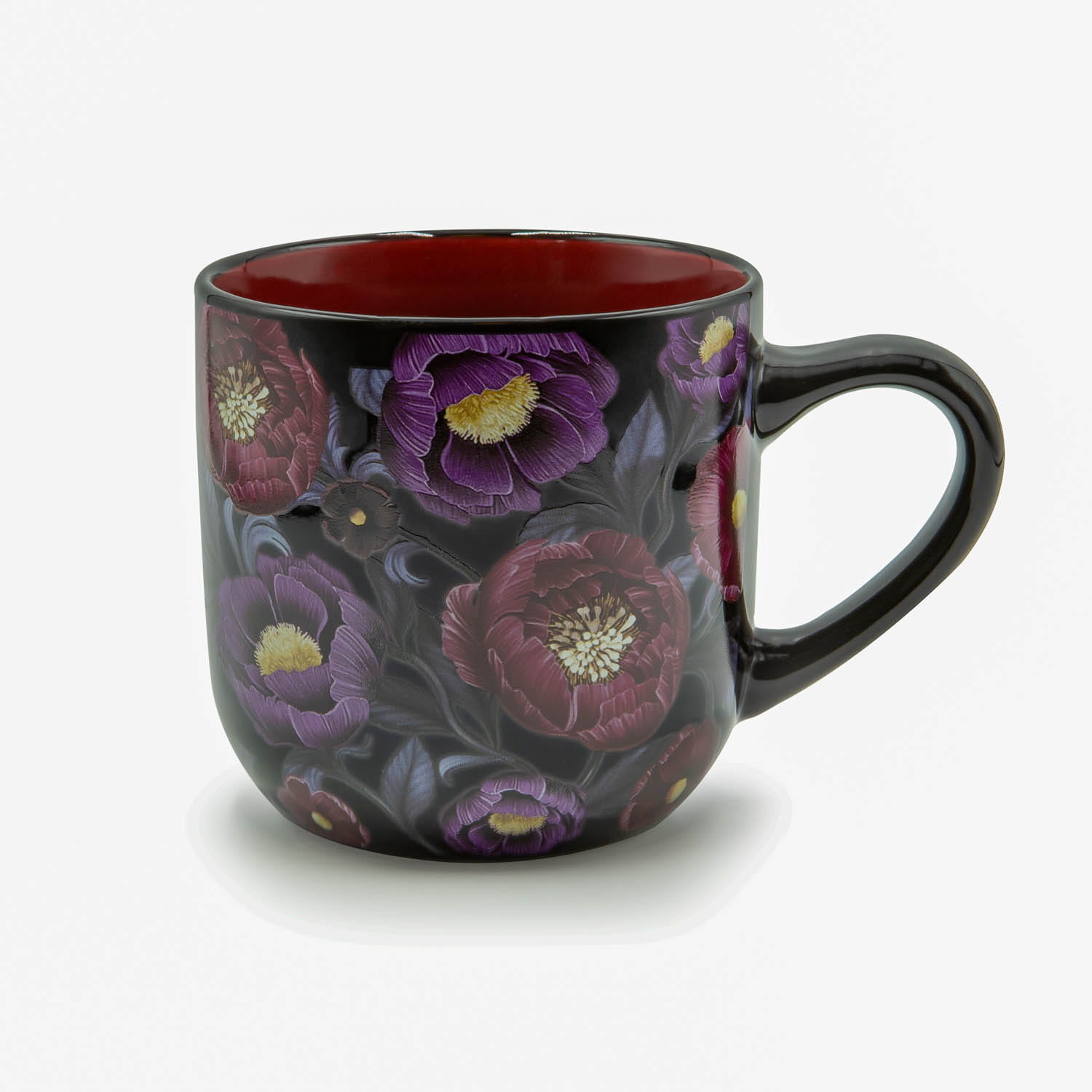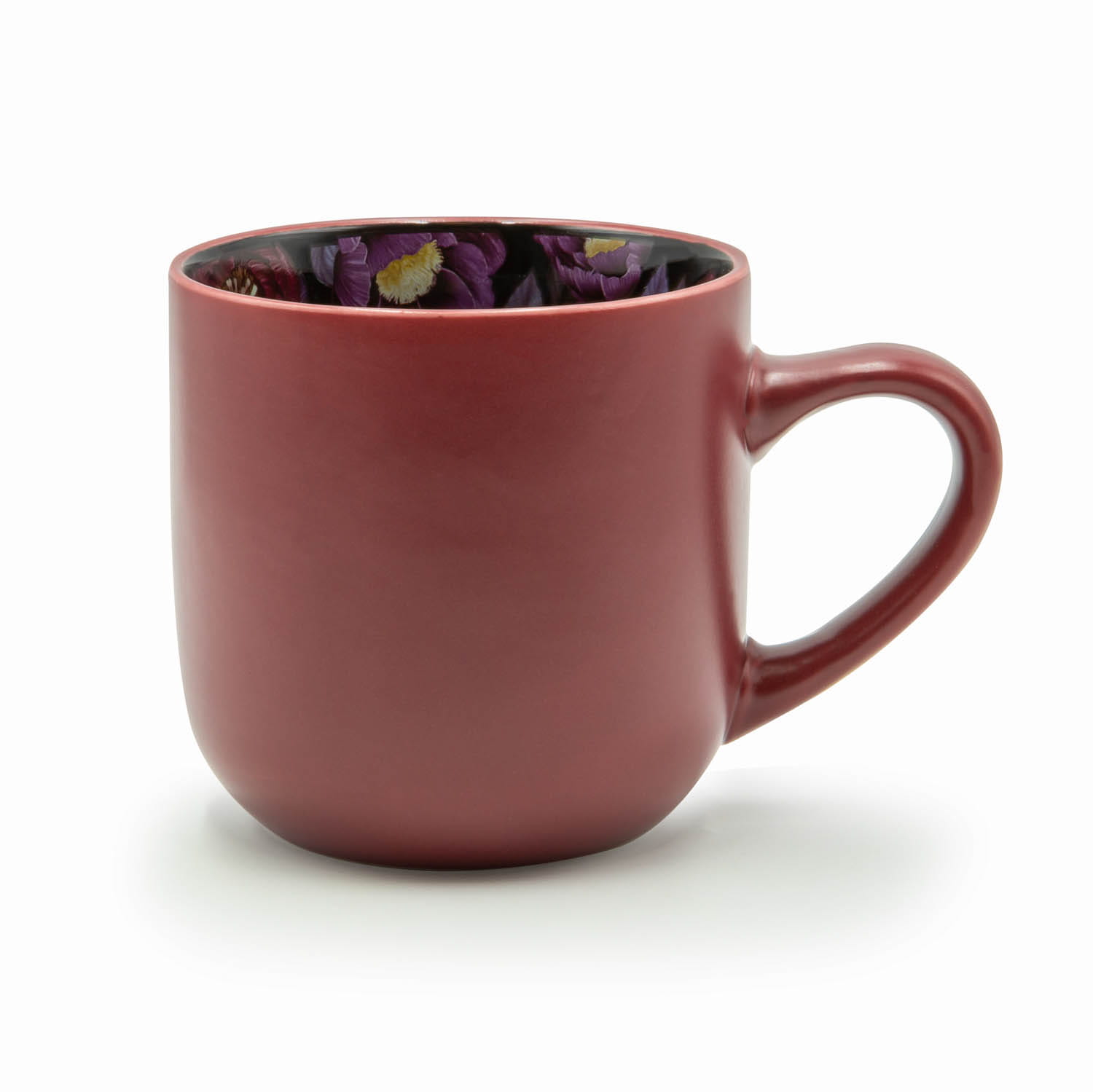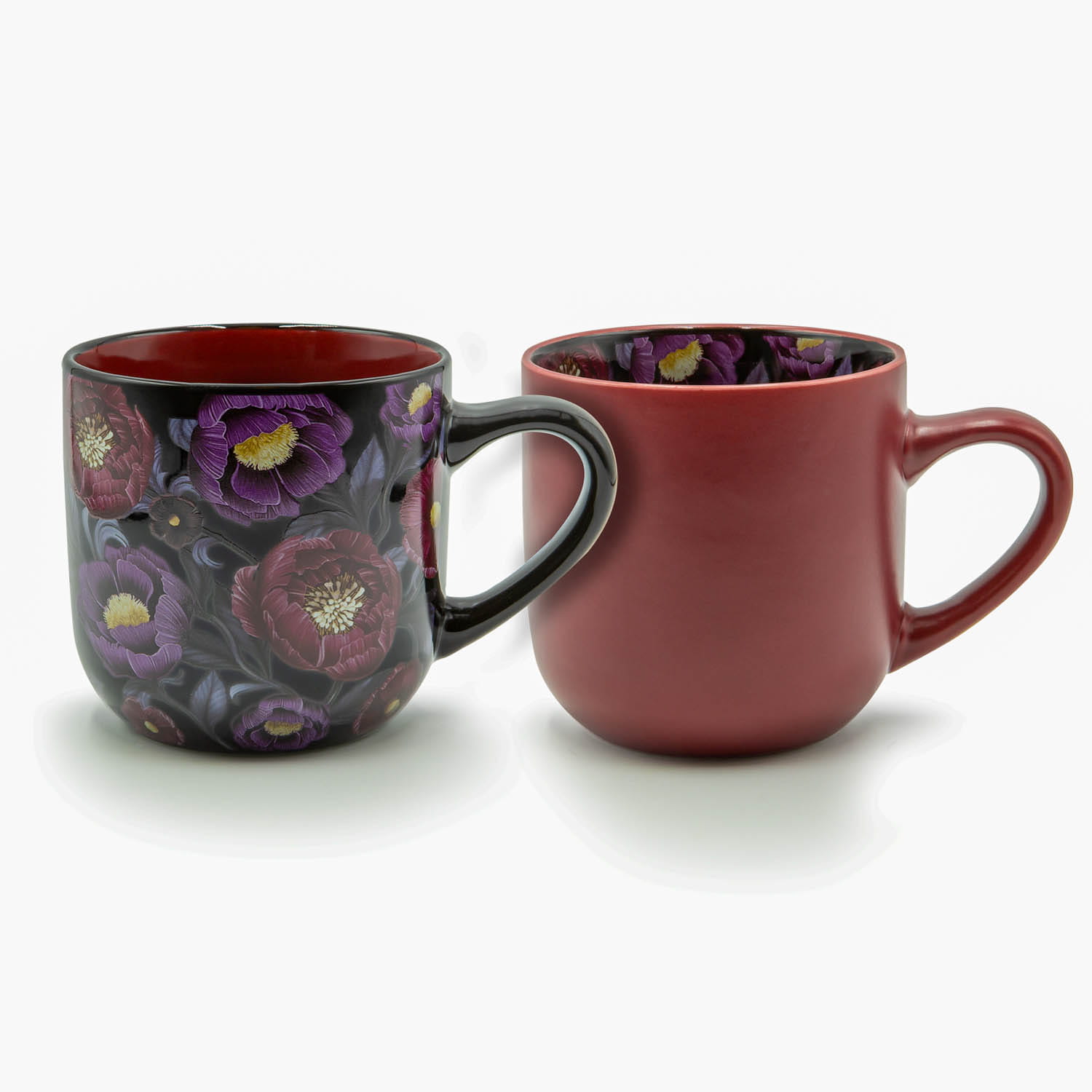 Wyjątkowy kubek w dwóch odsłonach z kwiatową grafiką wewnątrz.