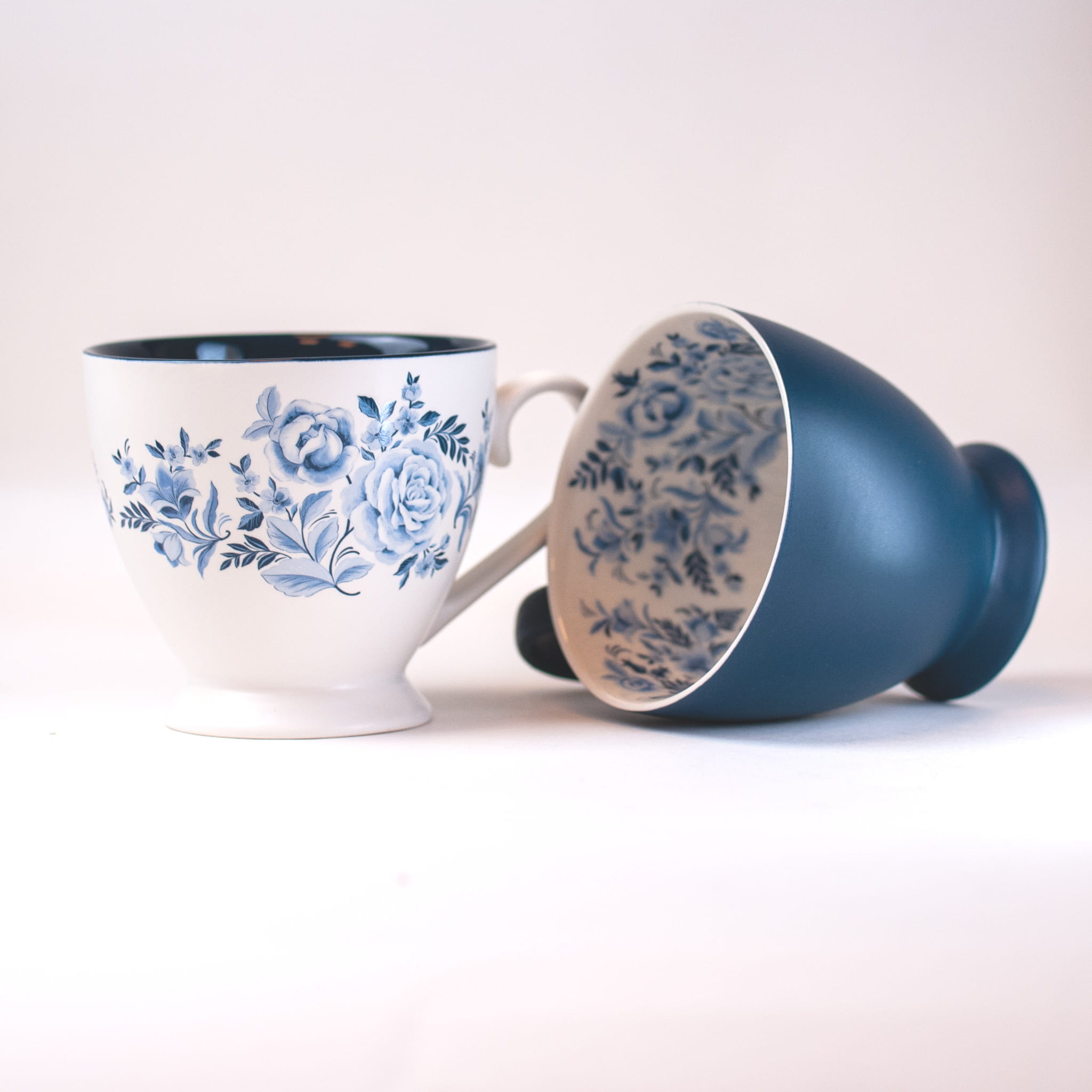 Uroczy kubek z motywem róży, w dwóch wariantach. Porcelana w błyszczącej i matowej odsłonie, w stonowanej kolorystyce urzeka elegancją.