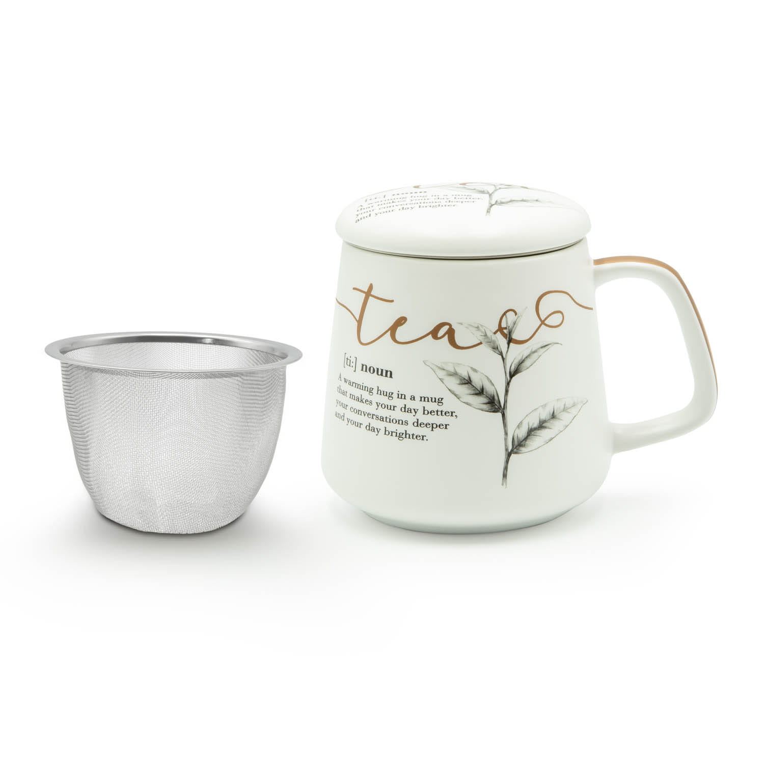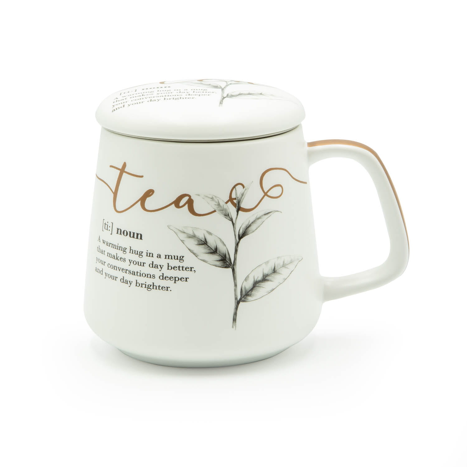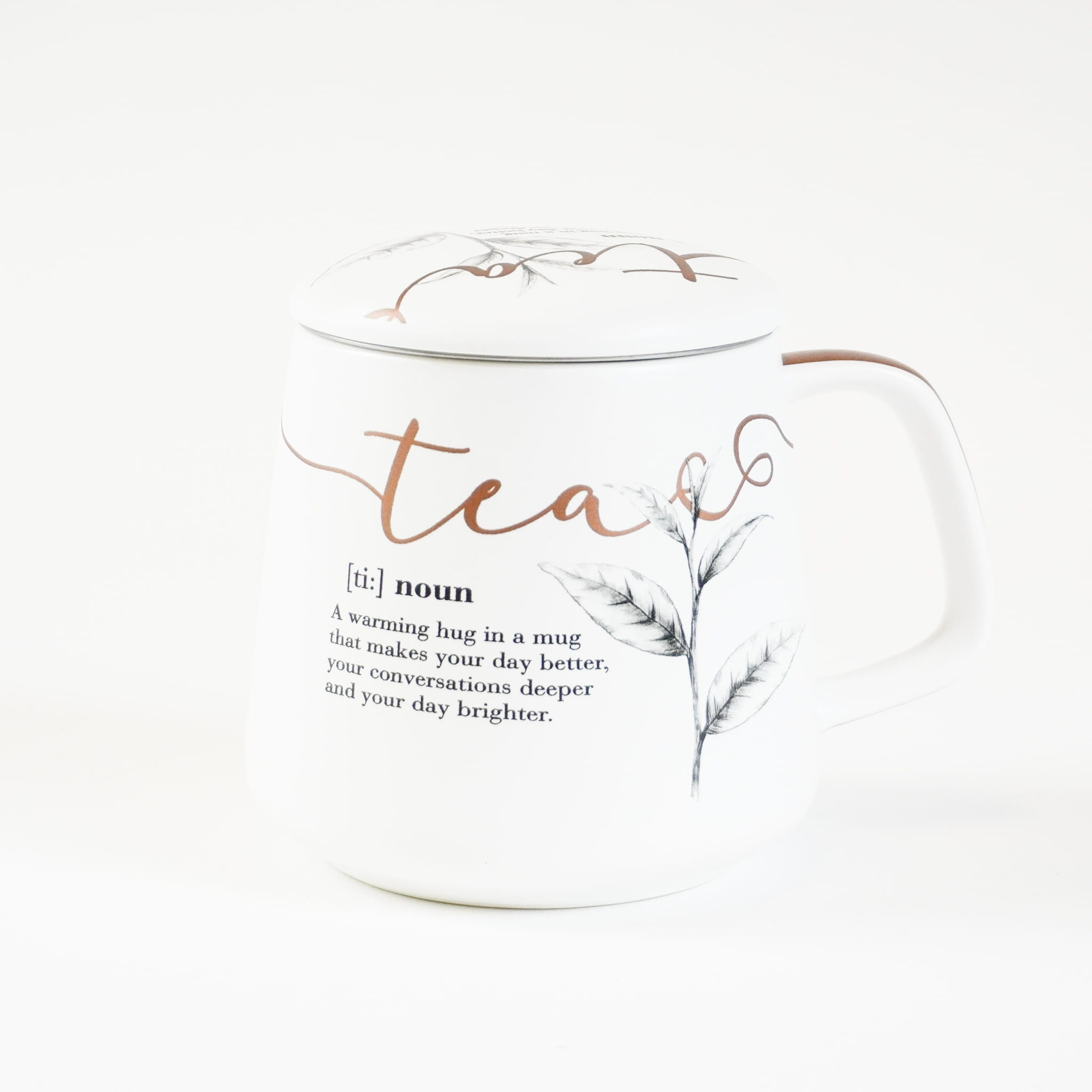 Cudowny kubek wykonany z matowej porcelany, z zaparzaczem i pokrywką w zestawie.