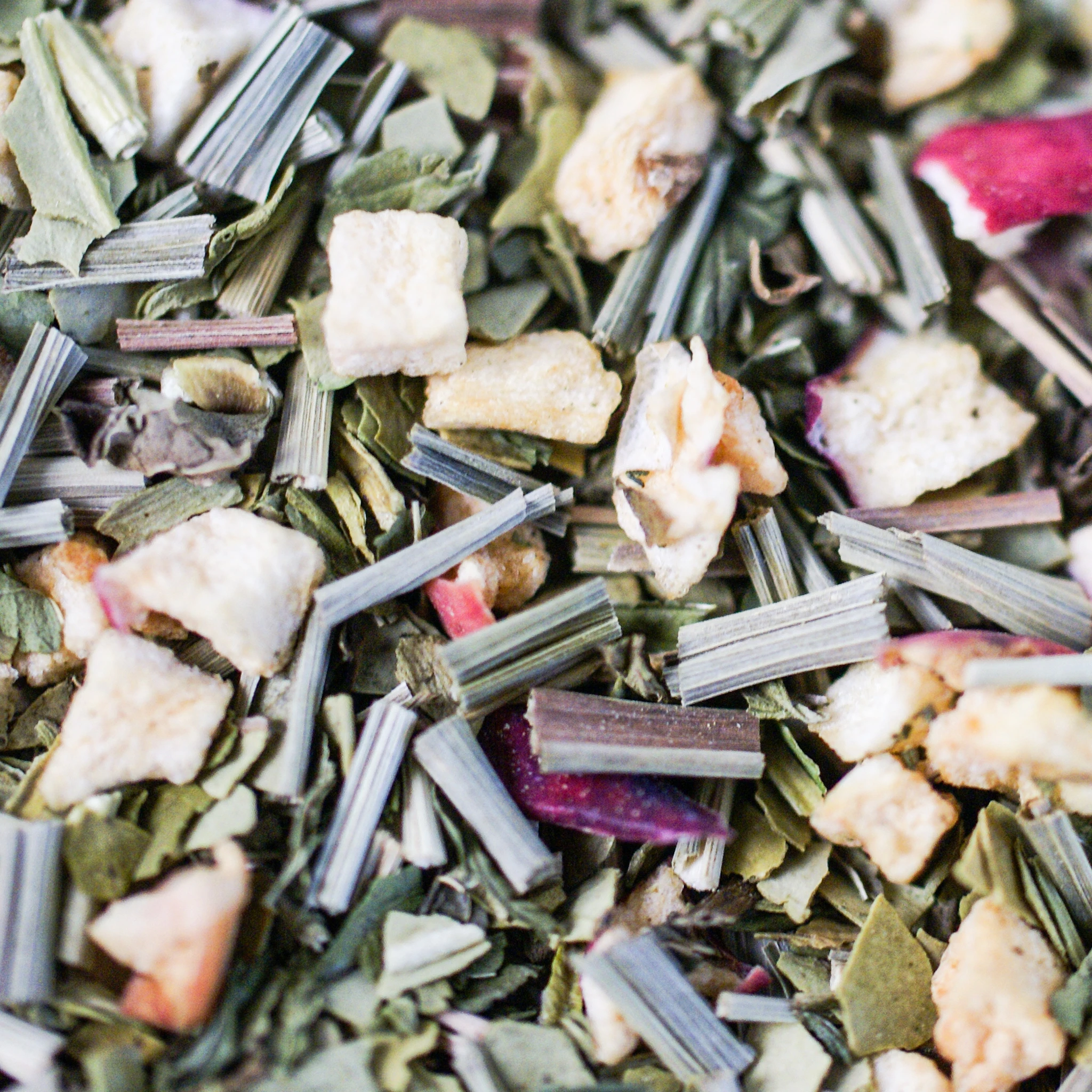 Skład: mate zielona (32%), kostki jabłka (31%), trawa cytrynowa (20%), mięta kędzierzawa (15%), aromat jabłkowy.