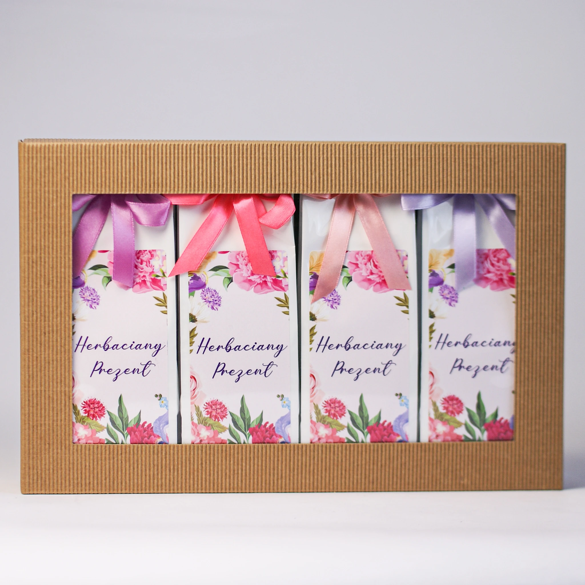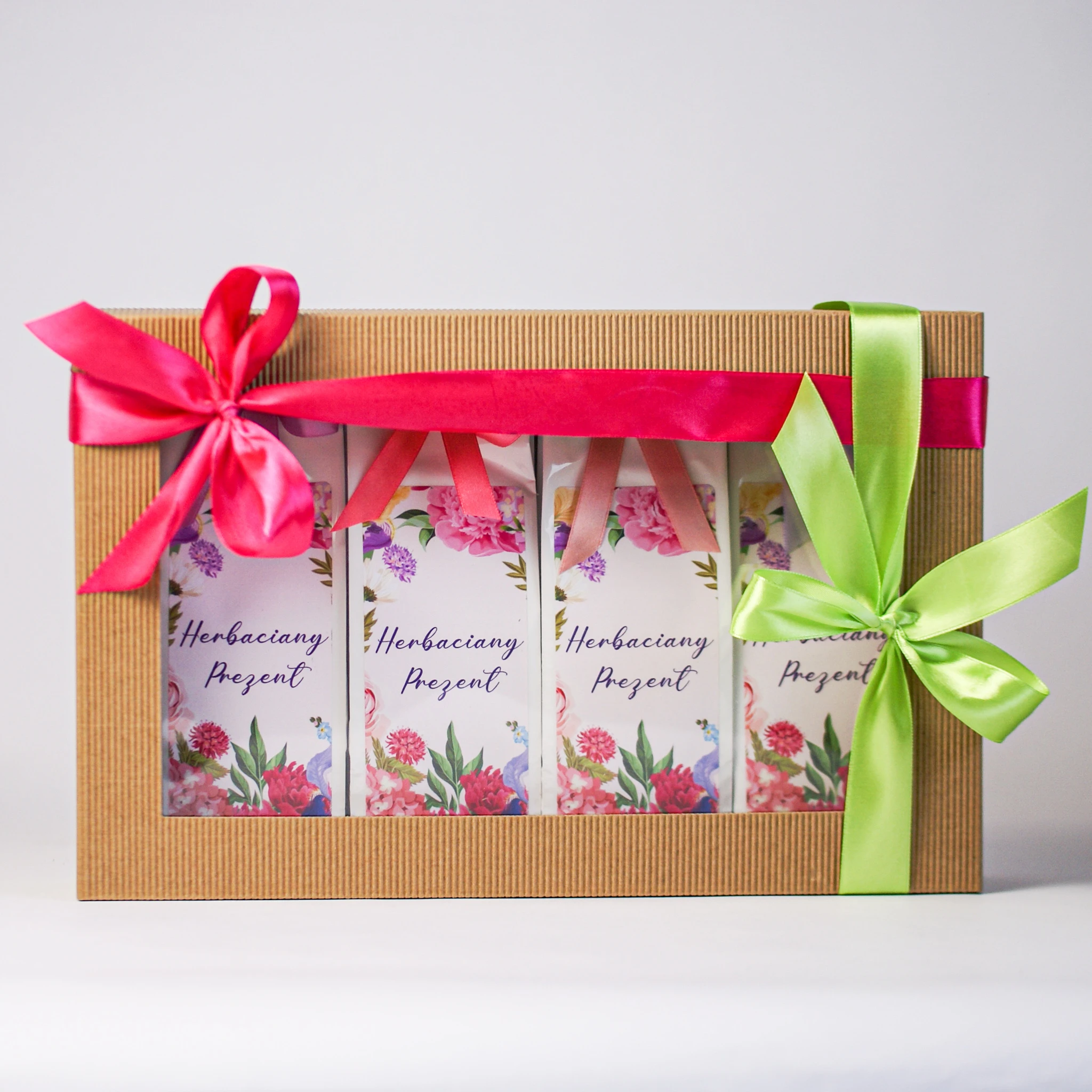 Pudełko prezentowe z karbowanej, czterowarstwowej tektury o wymiarach 320x210x70mm. Pudełko jest wytrzymałe a wieczko z okienkiem pozwala na wyeksponowanie zawartości.