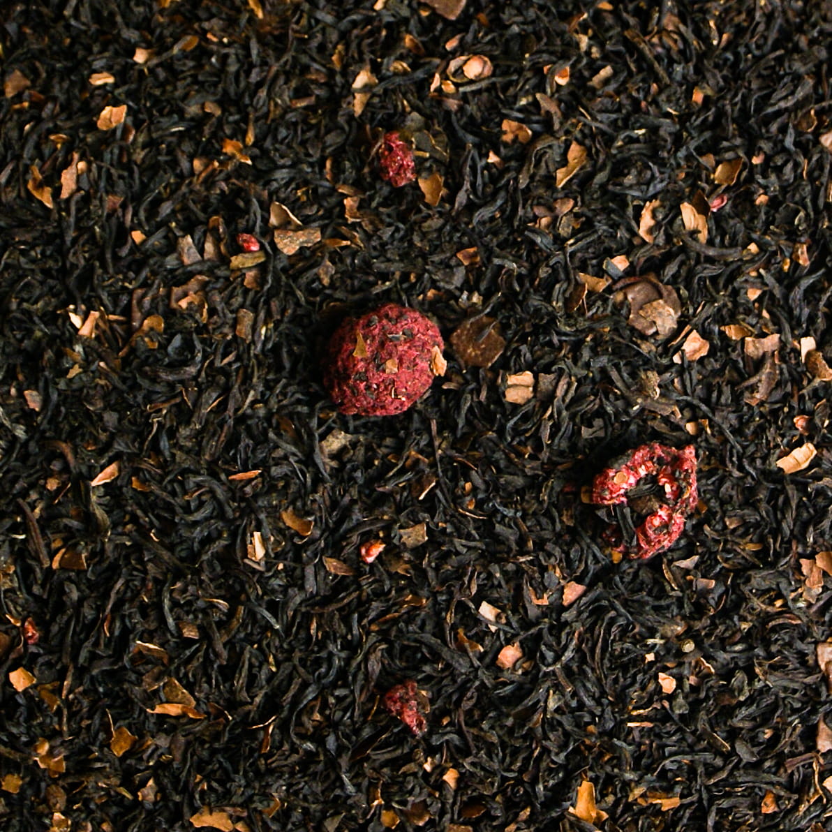 Raspberry Chocolate to bogata, głęboka w smaku kompozycja na bazie czarnej herbaty z dodatkiem malin, łusek kakao i cząstek czekolady. Pełna i wyrazista w smaku, zachwyca swoim niezwykłym aromatem. Charakteru nadaje jej subtelna goryczka, która wzmacnia czekoladowe i owocowe akcenty.